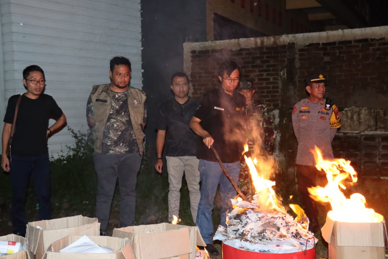 Pemusnahan surat suara sisa dan rusak tersebut dilakukan dengan cara dibakar, disaksikan oleh segenap tamu undangan yang hadir.