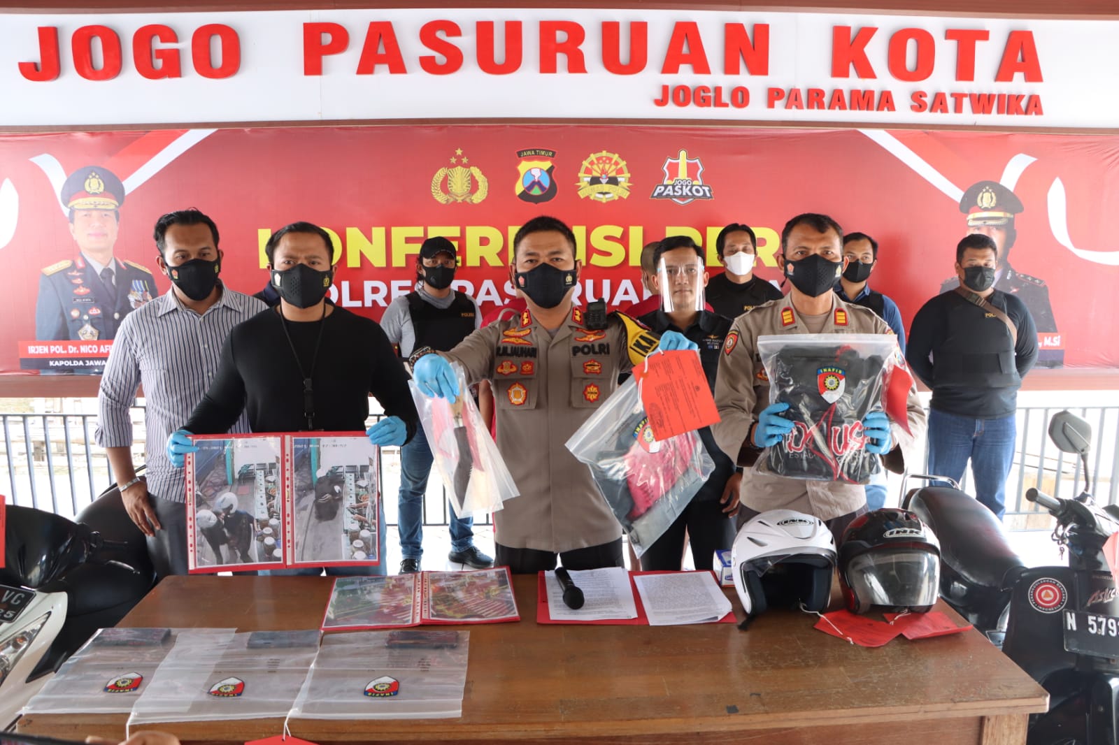 Dalam kegiatan tersebut dipimpin oleh Kapolres Pasuruan Kota AKBP Raden Muhammad Jauhari S.H S,I,K M,SI dan didampingi Kasat Reskrim, Kanit Pidum dan Kasi Humas Polres Pasuruan Kota.`