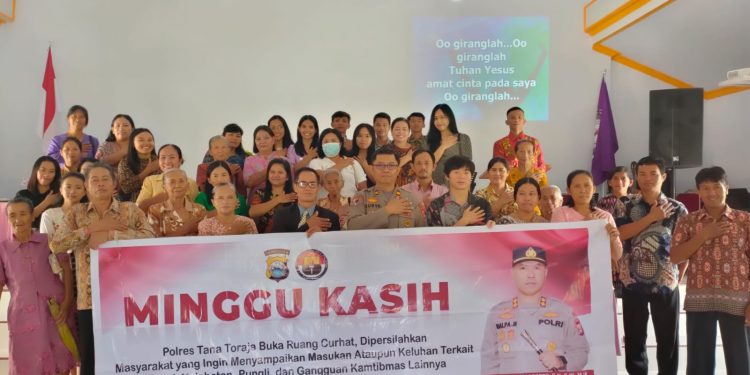 TANA TORAJA,ikagawanews.id – KBO Sat Binmas Polres Tana Toraja IPTU ANTHONIUS SURYA, melaksanakan kegiatan Minggu Kasih di Gereja Kibaid jemaat Panglion Kelurahan Buntu Burake Kecamatan Makale Kab. Tana Toraja, Minggu, 4 Februari 2024.