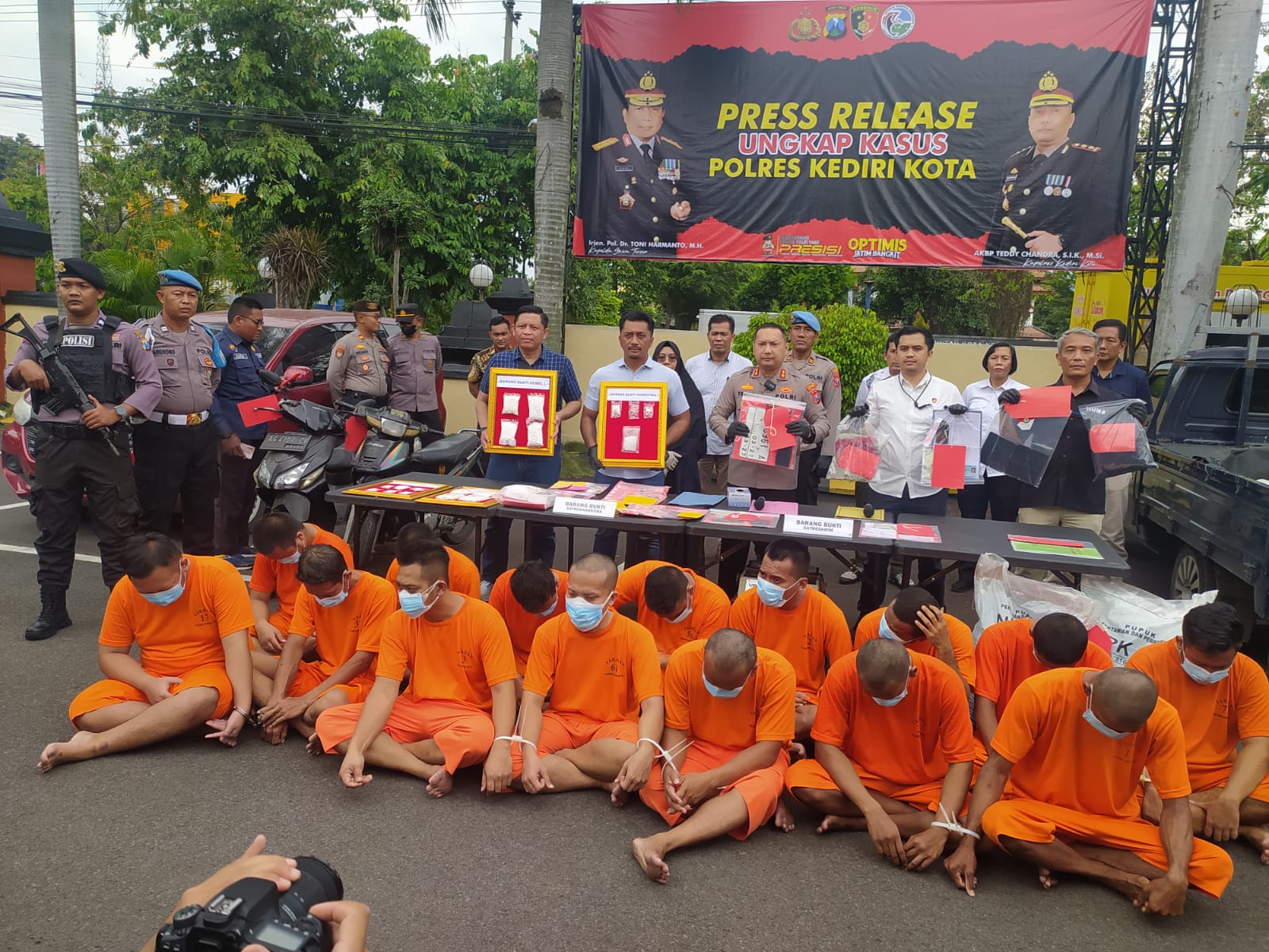 Kapolres Kediri Kota AKBP Teddy Chandra, S.I.K., M.Si. mengatakan dalam Press Release sebanyak 15 tesangka berhasil di amankan oleh Sat Reskrim dan Sat Resnarkoba Polres Kediri Kota, Sabtu (04/02).
