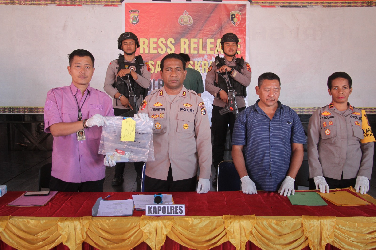 Hal ini disampaikan Kapolres Jayapura AKBP Fredrickus W.A Maclarimboen, S.IK., MH yang didampingi Kasat Reskrim AKP Sugarda A.B Trenggono, S.TK., MH saat press conference di Aula Obhe Reay May didepan awak media cetak dan elektronik. Selasa, 01/08 pagi.