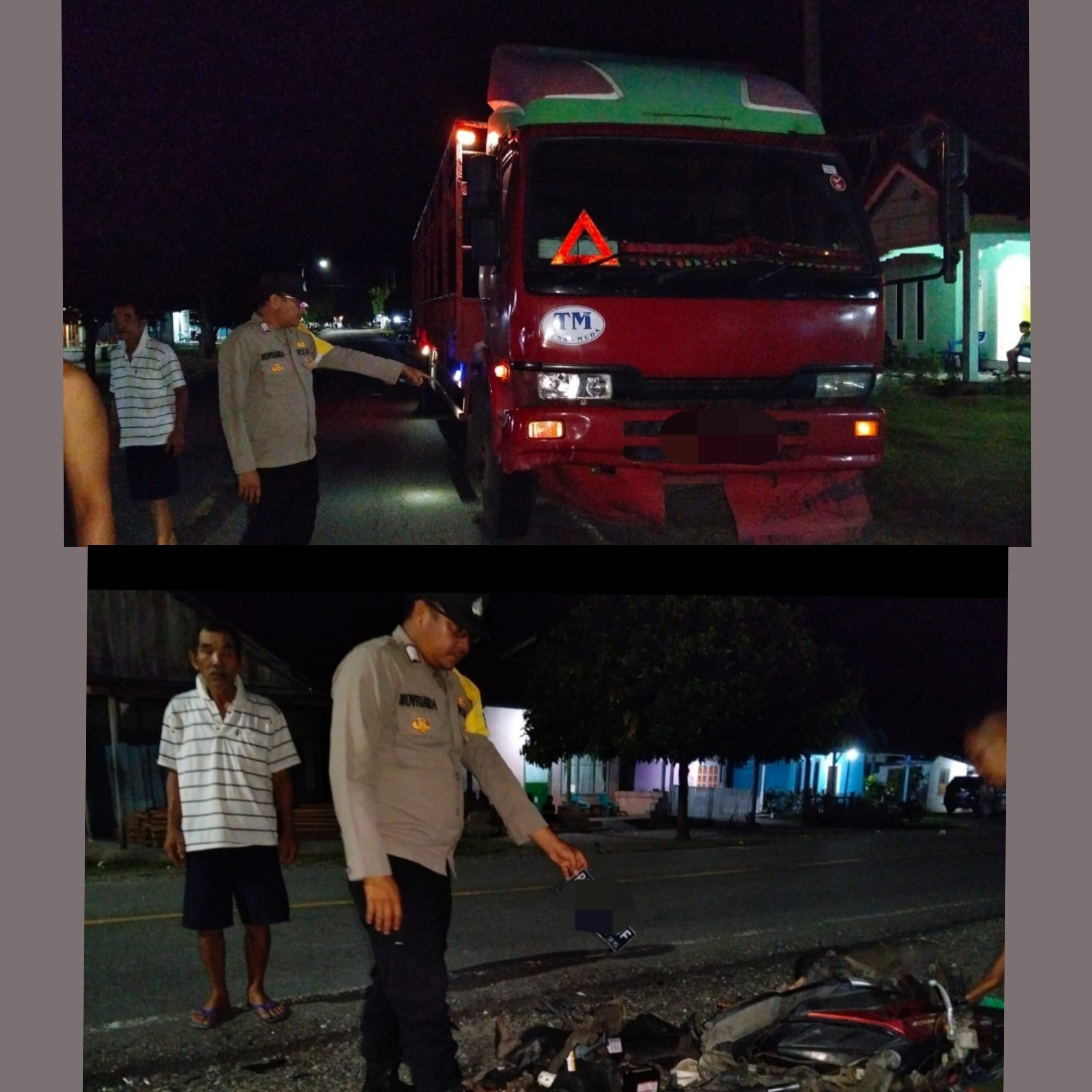 Kecelakaan tersebut melibatkan satu unit kendaraan truk Fuso warna merah dengan nomor polisi B 9580 UIO yang dikemudikan oleh Sdr. S (33) dengan satu unit sepeda motor Yamaha Mio M3 warna merah nomor polisi BD 5120 WF.