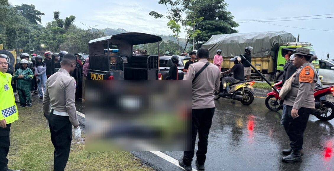 Namun karena kondisi hujan dan jalan licin, pengendara Scoopy kehilangan kendali. Motor bersama pengemudi tergelincir ke arah kanan jalan, sementara penumpang terlempar ke jalur kiri. Pada saat bersamaan, dari arah yang sama melintas truk Isuzu Canter kuning nomor polisi PA 8936 AG. Truk tersebut tidak dapat menghindar dan menabrak penumpang motor hingga meninggal dunia di tempat.
