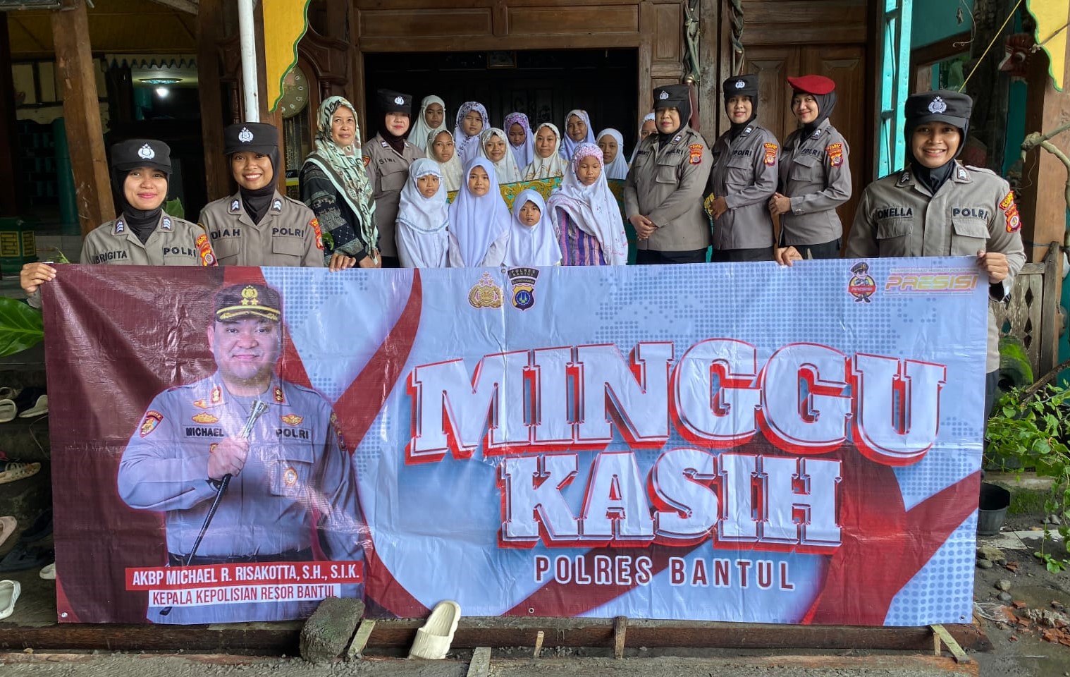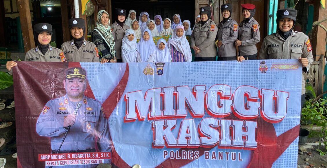 Kegiatan Minggu Kasih, Polwan Polres Bantul Bagikan Nasi Kotak ke Pondok Pesantren