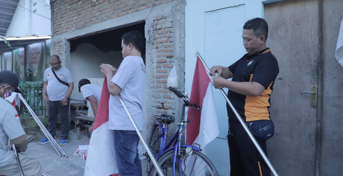Keliling Kampung, Polisi Kediri Kota Bagikan dan Pasang Bendera Merah Putih di Depan Rumah Warga
