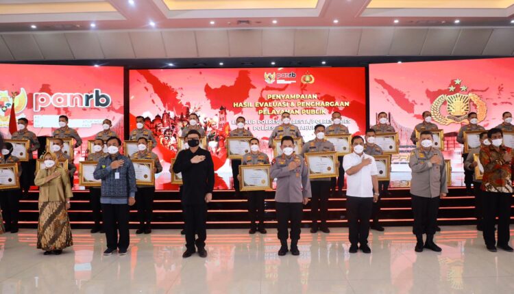 Gresik,ikagawanews.id  – Kementerian Pendayagunaan Aparatur Negara dan Reformasi Birokrasi (PAN-RB) menyerahkan penghargaan pelayanan publik tahun 2021 untuk lingkup Polres, Polresta, Polrestabes, dan Polres Metro. Penghargaan diberikan di Aula Awaluddin Djamin Gedung Bareskrim Polri Lantai 9, Jakarta, pukul 13.00 WIB dengan penerapan protokol kesehatan yang ketat, Kamis (10/03).