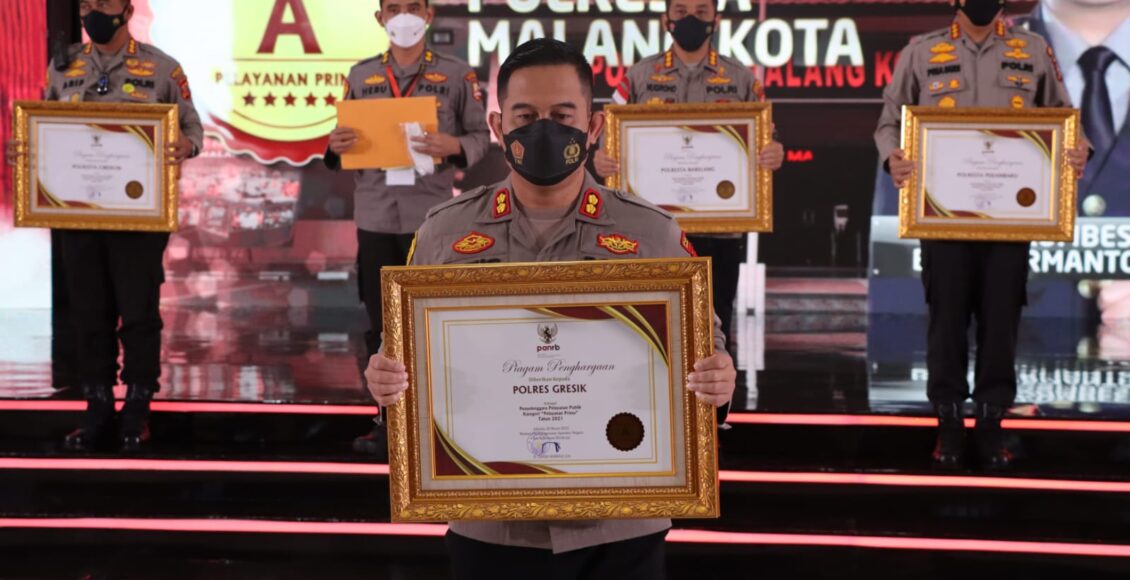Gresik,ikagawanews.id  – Kementerian Pendayagunaan Aparatur Negara dan Reformasi Birokrasi (PAN-RB) menyerahkan penghargaan pelayanan publik tahun 2021 untuk lingkup Polres, Polresta, Polrestabes, dan Polres Metro. Penghargaan diberikan di Aula Awaluddin Djamin Gedung Bareskrim Polri Lantai 9, Jakarta, pukul 13.00 WIB dengan penerapan protokol kesehatan yang ketat, Kamis (10/03).