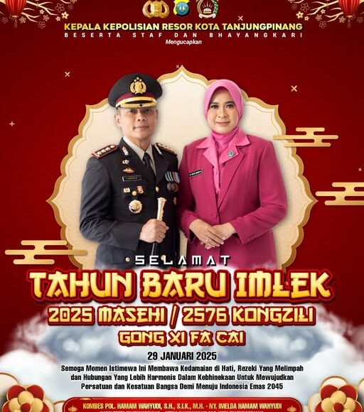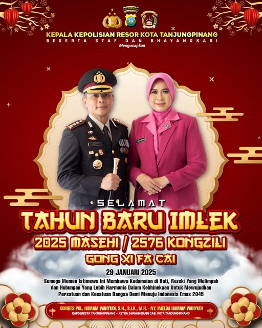 Kepala Kepolisian Resor Kota Tanjungpinang Beserta Staf dan Bhayangkari Mengucapkan: Selamat Tahun Baru Imlek 2025 Masehi / 2576 Kongzili 29 JANUARI 2025