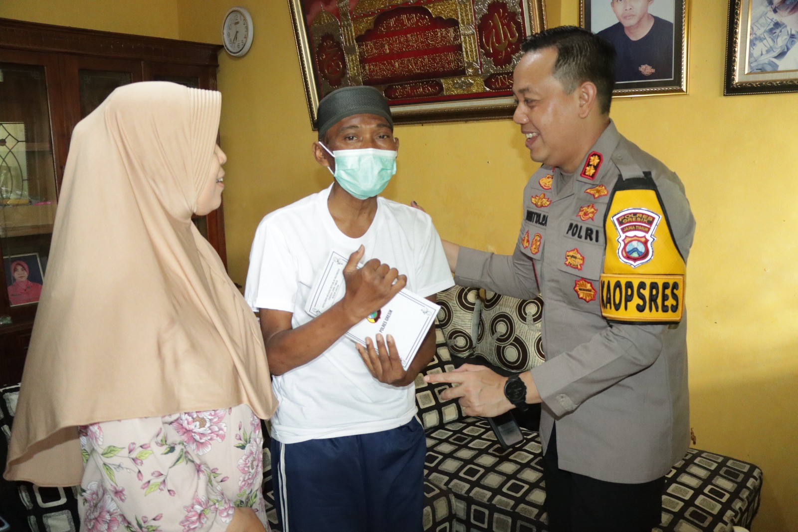 Anggota Polres Gersik yang mendapatkan kunjungan antara lain Bripka Wahyudi yang beralamat di Perum 2 Permata 1-F3 No 10 Tempel Krian Sidoarjo dan Aipda Yunus Wahyudi yang beralamat di Perum Omah Indah B2/30 Bringkang Menganti Gresik.