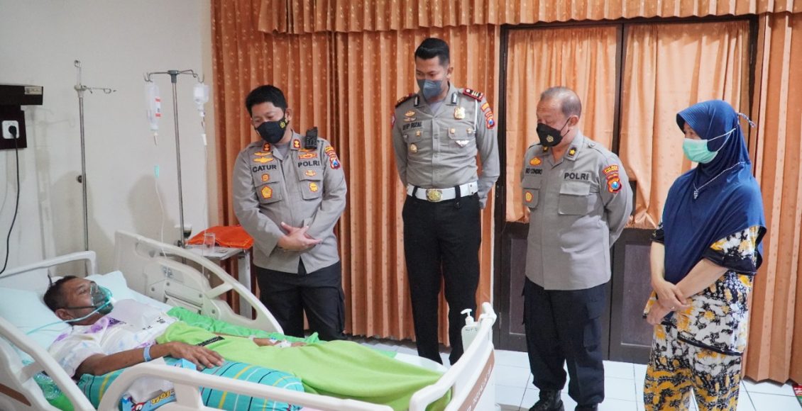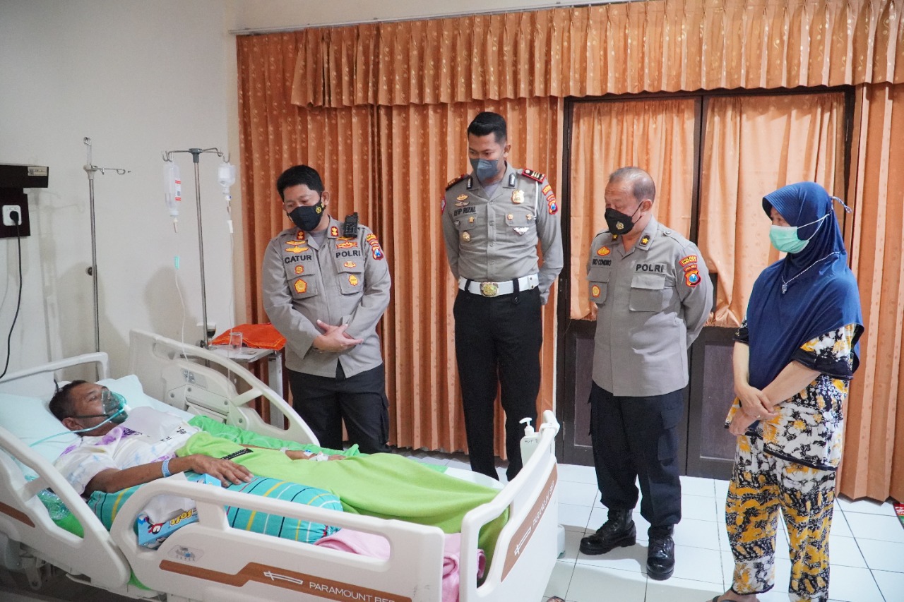 ” Informasi diketahui, kedua anggota sedang dalam perawatan dirumah sakit, sehingga kita bersama PJU meluangkan waktu menjenguk,” kata AKBP Catur