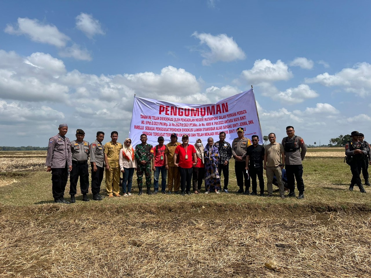 Objek eksekusi adalah tanah seluas 1,5 hektare yang terdiri dari 9 petak sawah. Batas-batas objek eksekusi ini mencakup Sebelah Utara Tanah kebun milik H. Latif, Bassi, dan Sakka, Sebelah Timur Tanah sawah milik Syam/Sappe dan Duhe/Baba, Sebelah Selatan Tanah sawah milik Taibe dan Alimuddin dan Sebelah Barat Tanah sawah milik H. Bahar/Duhe, Hj. Citra/Mansyur, dan Kallocong/Salim.