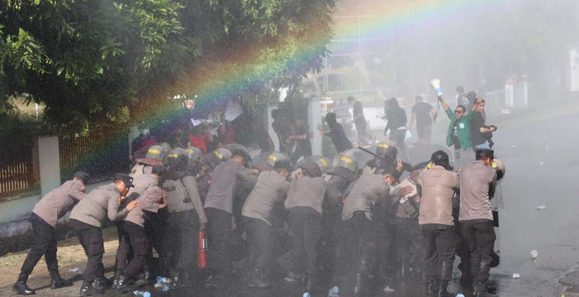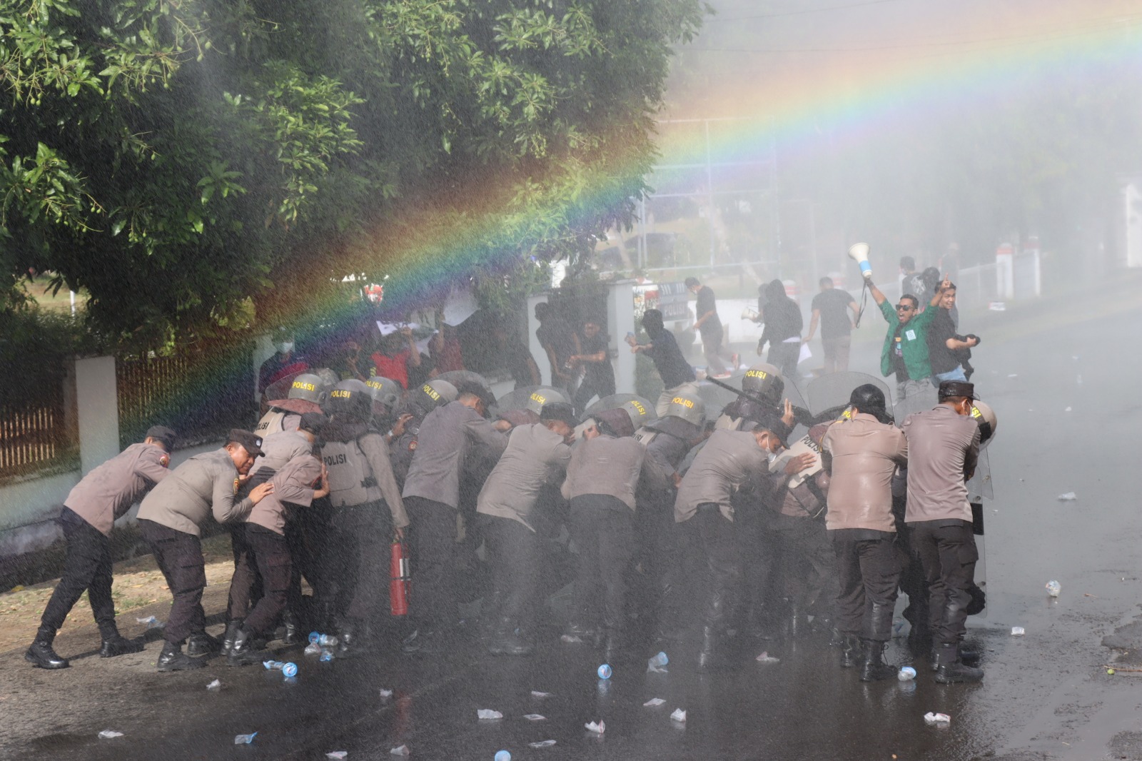 “Dan saat situasi makin tidak terkendali, petugas melakukan tindakan tegas dan terukur guna membubarkan massa sesuai dengan Perkap 16 tahun 2006, ” terangnya.
