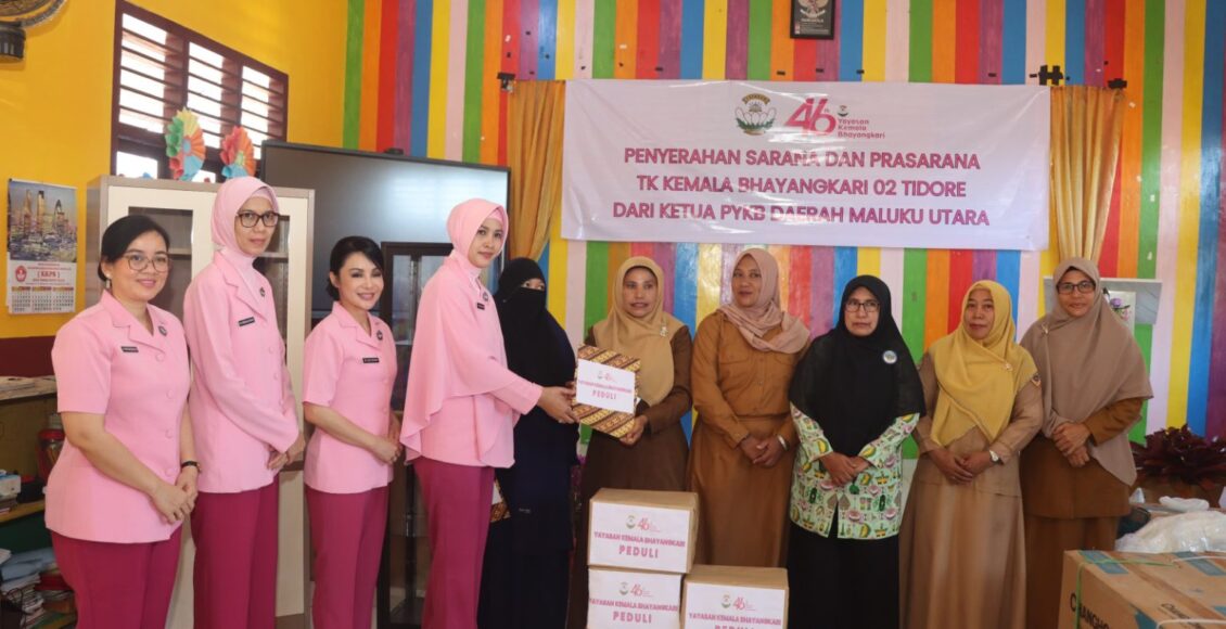 TIDORE,ikagawanews.id – Ketua Pengurus Yayasan Kemala Bhayangkari (PYKB) Daerah Maluku Utara, Ny. Sari Waris Agono, didampingi oleh Ketua Pengurus Yayasan Kemala Bhayangkari (PYKB) Cabang Kota Tidore, Ny. Deby Ampi, melaksanakan kunjungan kerja sekaligus penyerahan bantuan di TK Kemala Bhayangkari 02 Tidore pada Senin, (27/4).