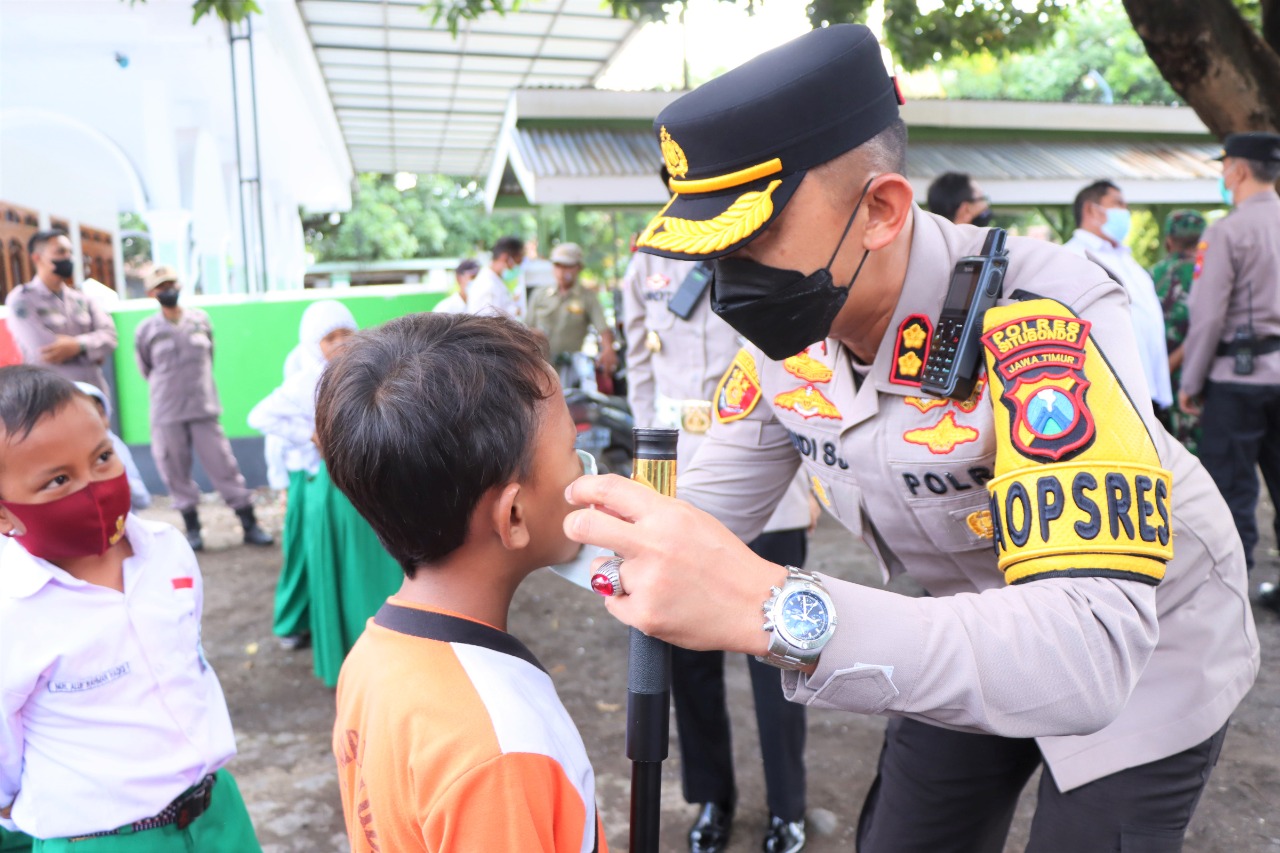 AKBP Dr. Andi Sinjaya, S.H., S.I.K., M.H. menegaskan Polres Situbondo bersinergi dengan semua pihak, Pemerintah Daerah, Dinkes, Diknas bahkan pihak Sekolah langsung untuk bergerak cepat melaksanakan akselerasi vaksinasi di kabupaten Situbondo, terutama vaksin anak. Tujuannya mendukung Pembelajaran Tatap Muka (PTM) dapat berjalan lancar, aman dan nyaman.