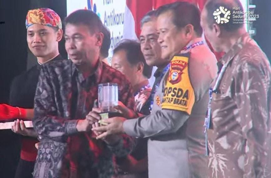 Penghargaan tersebut diterima langsung Kapolda Sulsel Irjen Pol Drs. Setyo Boedi Moempoeni Harso, S.H., M.Hum dalam acara Hari Antikorupsi Sedunia (Harkodia) 2023 yang digelar di Ruang Utama Istora GBK Jl. Pintu Senayan Jakarta, Selasa (12/23)