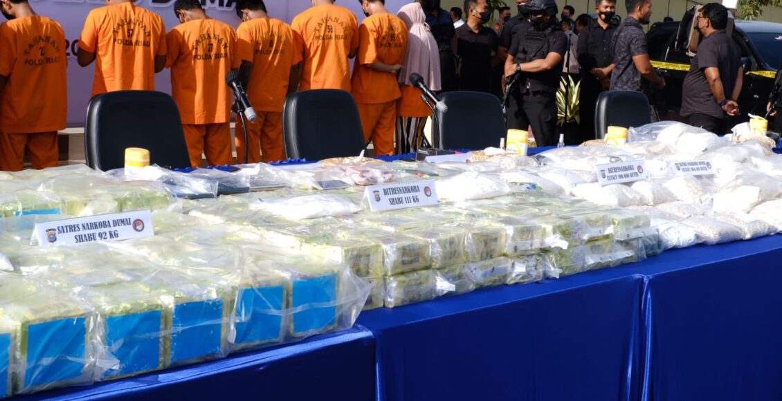 Sedangkan kasus ketiga, Satuan Reserse Narkoba Polres Dumai pada Rabu 14 September 2022 mengamankan 92 kg sabu dan 304.491 butir ekstasi dari dia tersangka JUR (45 tahun) dan RAF (28 tahun) di TKP tepi pantai Bandar Laksamana Bengkalis.