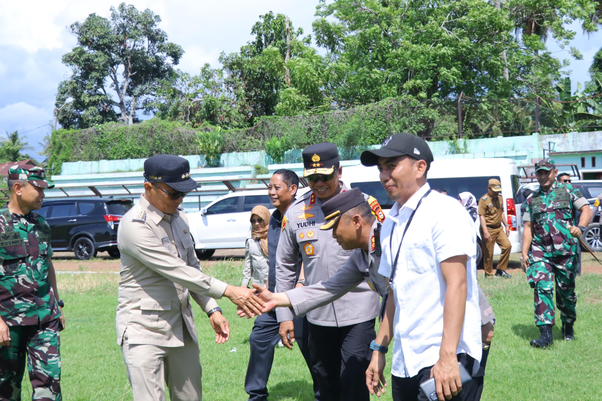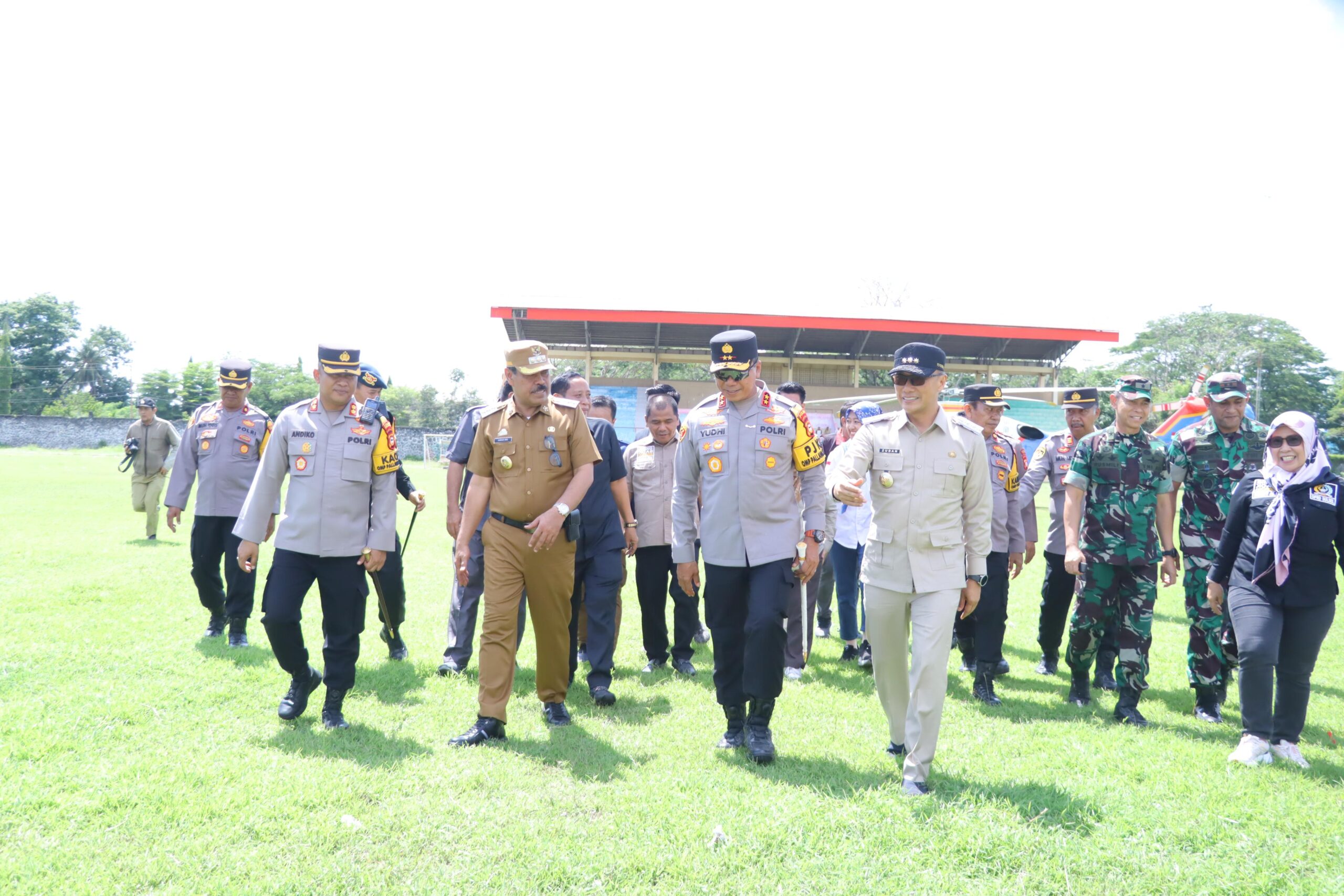 Rombongan Forkopimda Sulsel yang hadir Penjabat Gubernur Sulawesi Selatan Prof. Dr. Zudan Arif Fakrulloh, S.H., M.H., Kapolda Sulsel Irjen Pol Yudhiawan, S.I.K., S.H., M.H., Kasdam XIV/Hasanuddin Brigjen TNI Rusmili, S.IP., M.Si, Wakil Ketua DPRD Sulsel Rahman Fina, serta perwakilan KPU dan Bawaslu Provinsi Sulsel