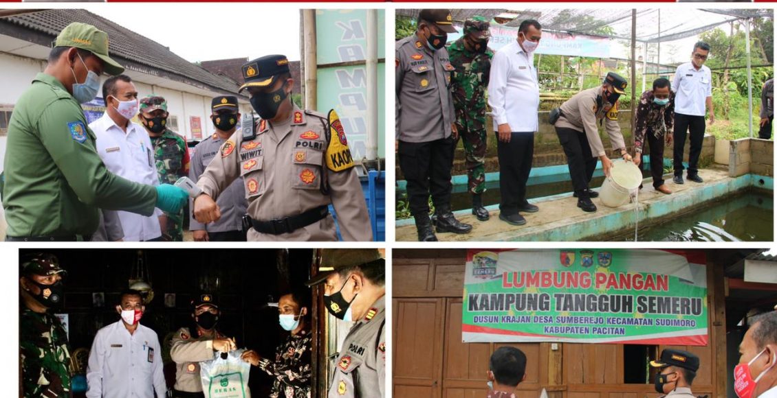 Pada kesempatan itu, Rombongan meninjau tempat isolasi, Lumbung pangan, Dapur umum, Posko dan lain-lain, yang dilanjutkan menabur benih. Serta diteruskan Kades memberikan sambutan selamat datang kepada Kapolres beserta Forkopimda.