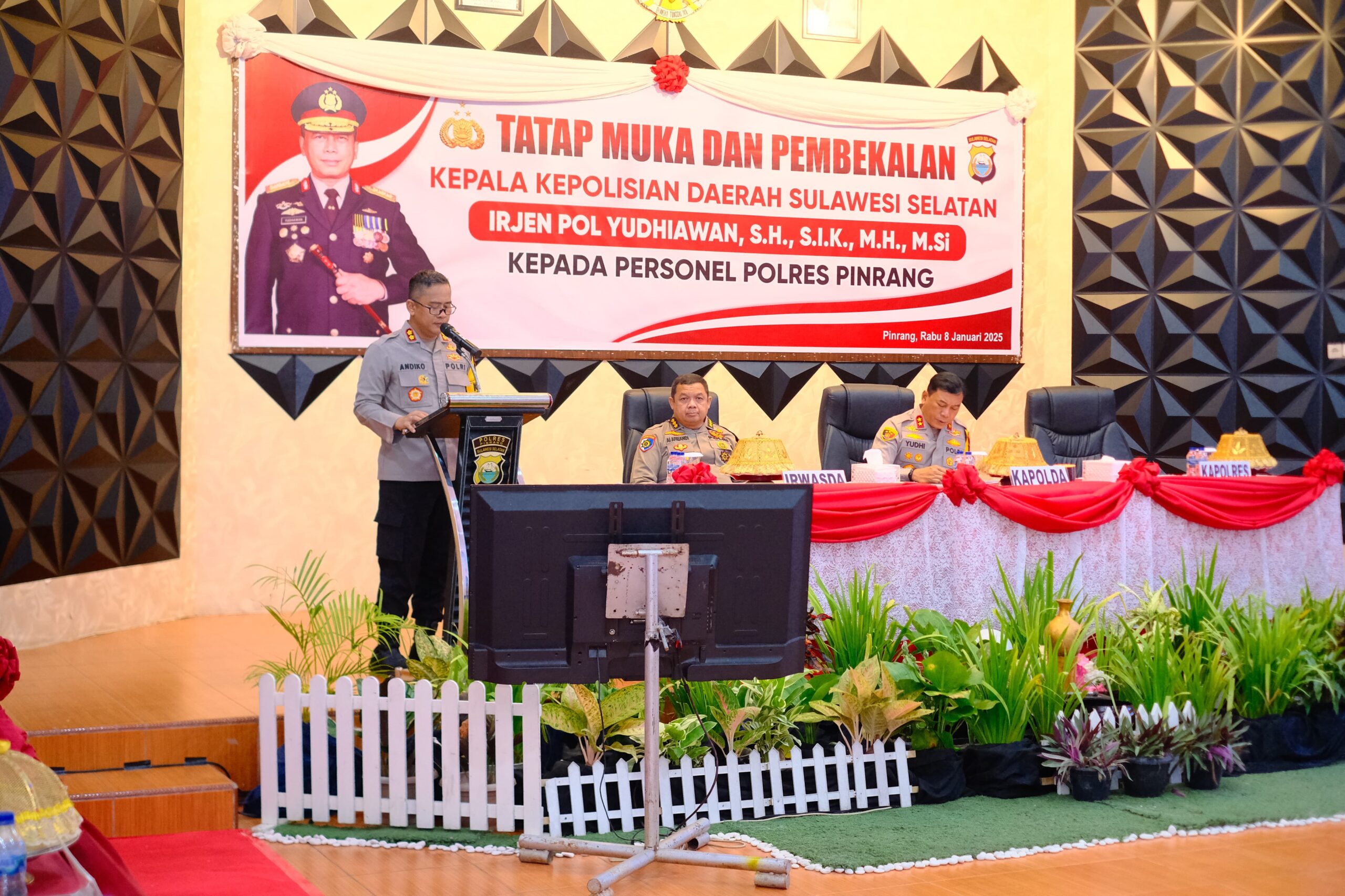 Dalam arahannya, Kapolda Sulsel mengapresiasi pelaksanaan pengamanan Natal dan Tahun Baru serta Operasi Mantap Praja yang telah berjalan dengan baik. Ia juga menekankan pentingnya mematuhi etika Polri yang meliputi etika kepribadian, kenegaraan, kelembagaan, dan hubungan dengan masyarakat. Kapolda mendorong seluruh anggota untuk terus berinovasi dalam mendukung program ketahanan pangan.