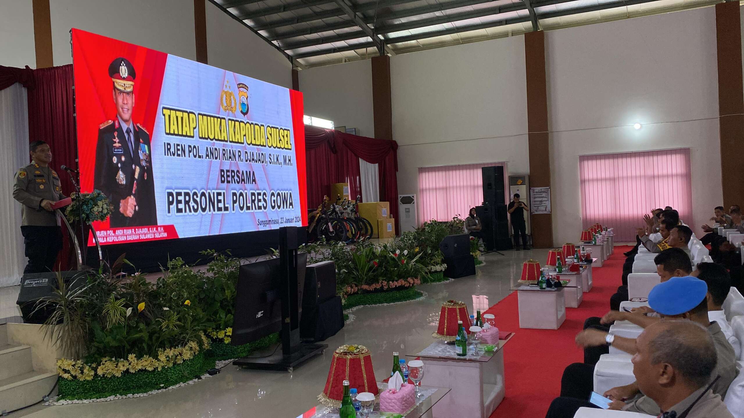 Dalam kegiatan tatap muka di Aula Rewako Polres Gowa, Kapolda memberikan arahan kepada personel Polres Gowa untuk menjaga soliditas dan loyalitas dalam menjalankan tugasnya.
