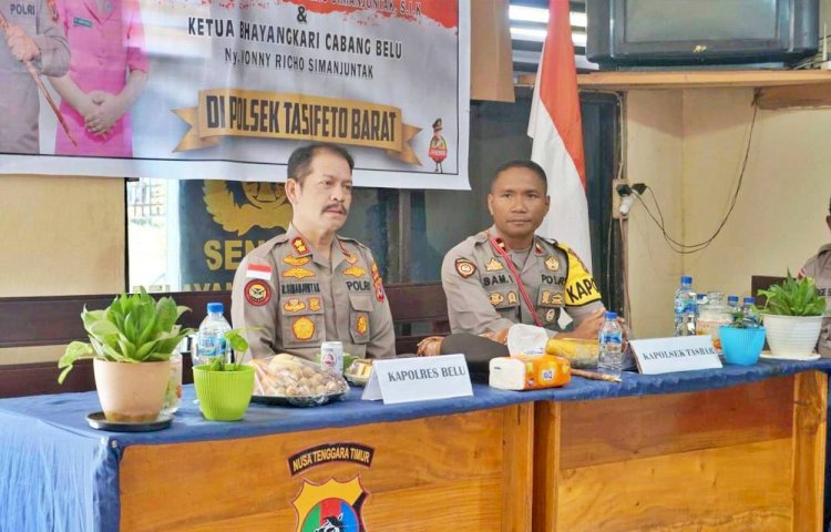BELU,ikagawanews.id – Guna melihat secara dekat situasi dan kondisi anggota di lapangan, Kapolres Belu, AKBP Richo Nataldo Devallas Simanjuntak, S.I.K, didampingi Ketua Bhayangkari Cabang Belu, Ny.Vonny Simanjuntak beserta pejabat utama Polres dan Pengurus cabang Bhayangkari Belu, senin (19/6/2023) kemarin melakukan kunjungan kerja ke dua polsek jajaran.