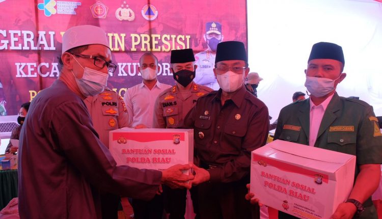 Dalam kesempatan tersebut, Kapolda Riau menyerahkan bantuan sosial bagi Masyatakat yang kurang mampu yakni sebanyak 200 (dua ratus) paket sembako serta bantuan karpet untuk rumah ibadah yang diserahkan secara simbolis oleh Kapolda Riau kepada pengurus Masjid Jamik Al-Hidayah Desa Teluk Dalam Kecamatan Kuindra berupa 10 (sepuluh) gulung dengan panjang 60 Meter.