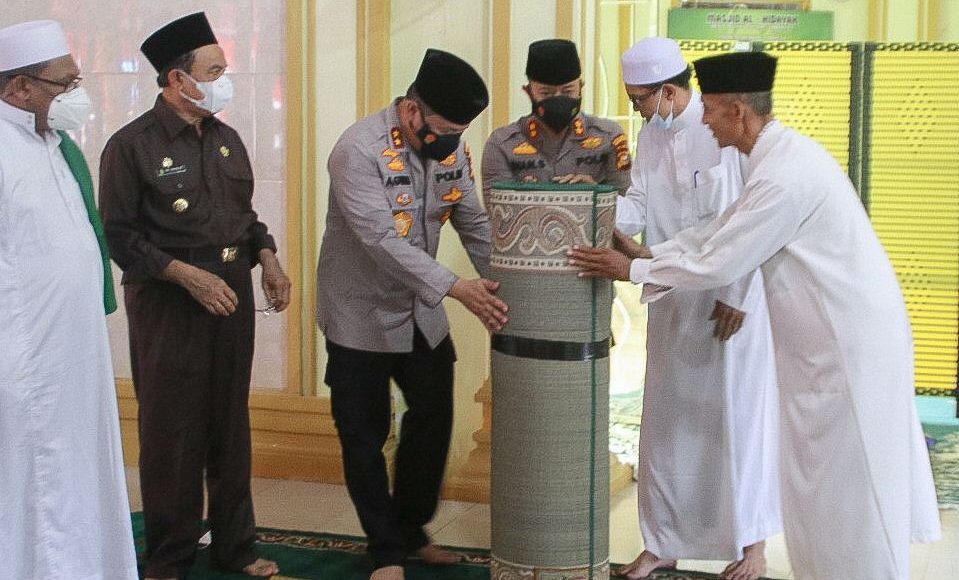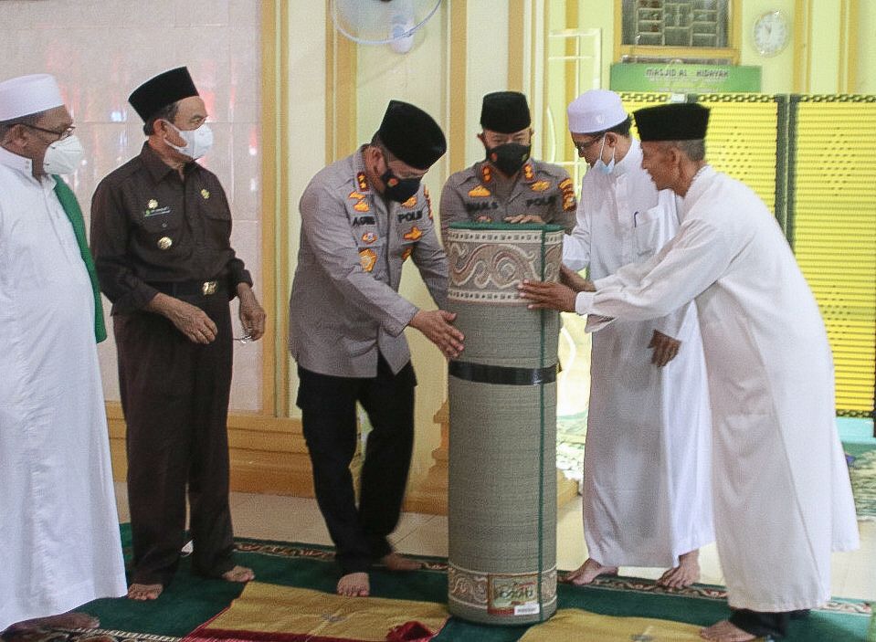 Dalam kesempatan tersebut, Kapolda Riau menyerahkan bantuan sosial bagi Masyatakat yang kurang mampu yakni sebanyak 200 (dua ratus) paket sembako serta bantuan karpet untuk rumah ibadah yang diserahkan secara simbolis oleh Kapolda Riau kepada pengurus Masjid Jamik Al-Hidayah Desa Teluk Dalam Kecamatan Kuindra berupa 10 (sepuluh) gulung dengan panjang 60 Meter.
