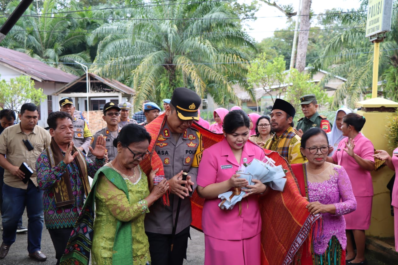 Kegiatan yang diawali dengan pemberian ulos oleh tokoh adat di Kecamatan Kolang kepada Kapolres Tapteng dan istri oleh bapak A. Tarihon