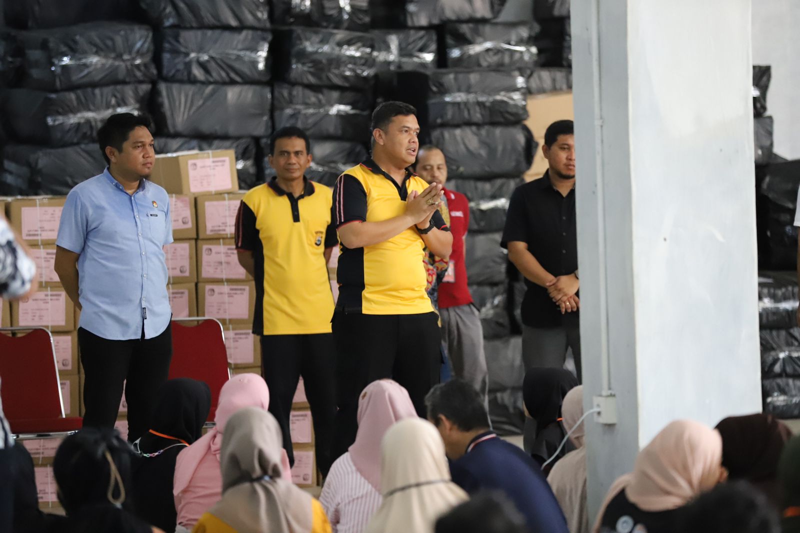 Disela kunjungannya, Kapolres Gowa AKBP R.T.S Simanjuntak menemui para petugas pelipat kertas surat suara dan memberikan beberapa imbauan sebelum pelaksanaan Pelipatan Kertas Surat Suara Pemilu 2024.