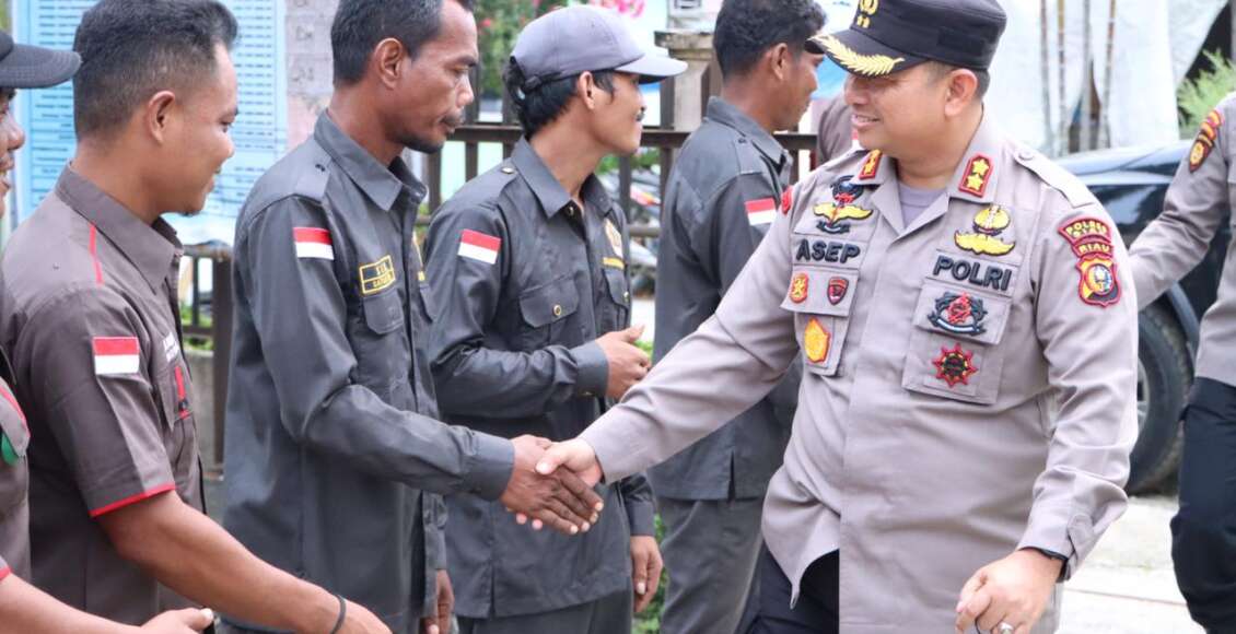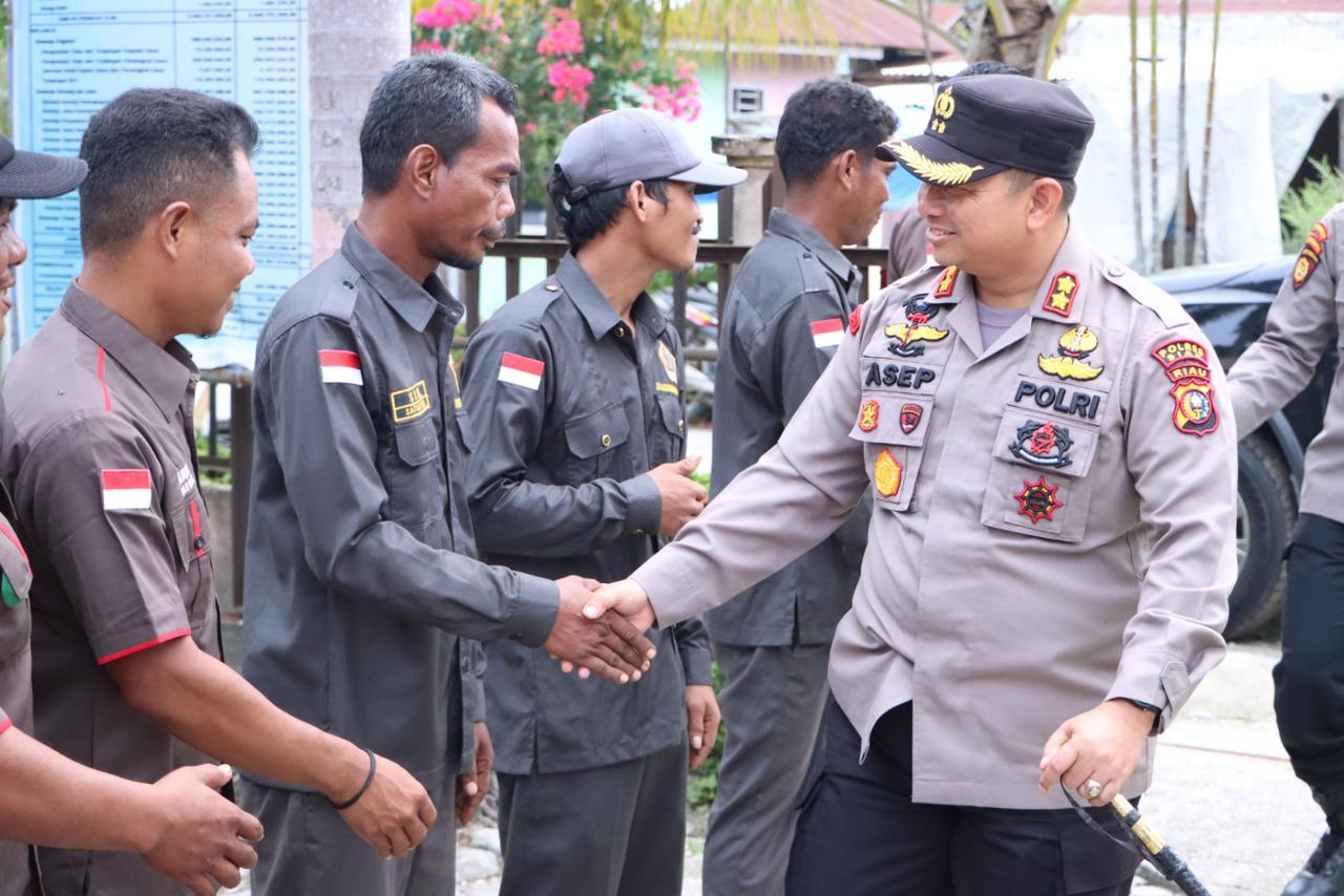 Kunjungi Masayarakat Sakai Kecamatan Kandis, AKBP Asep Sujarwadi, SIK, MSI Berikan Bantuan Helm SNI dan Alat alat Olahraga