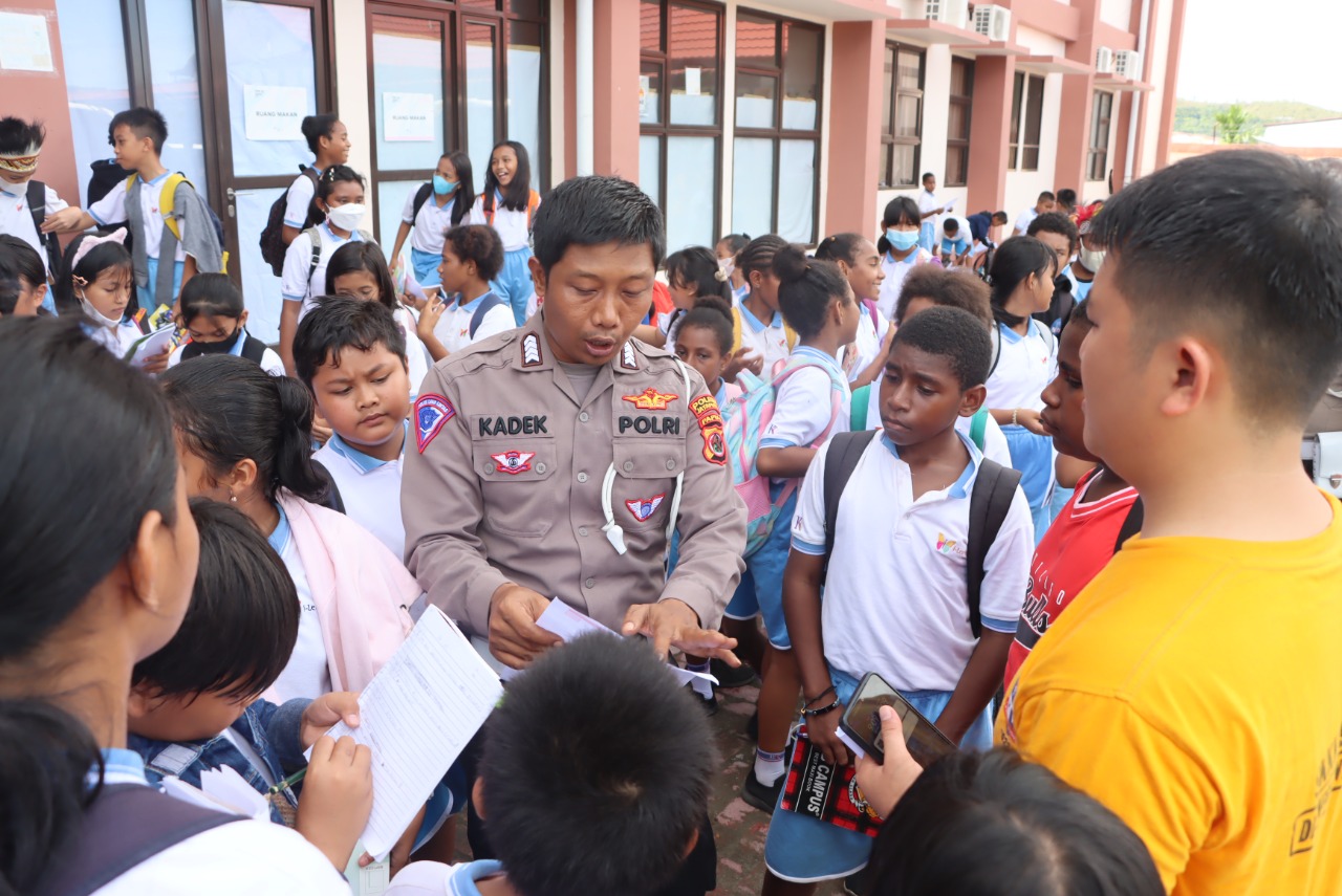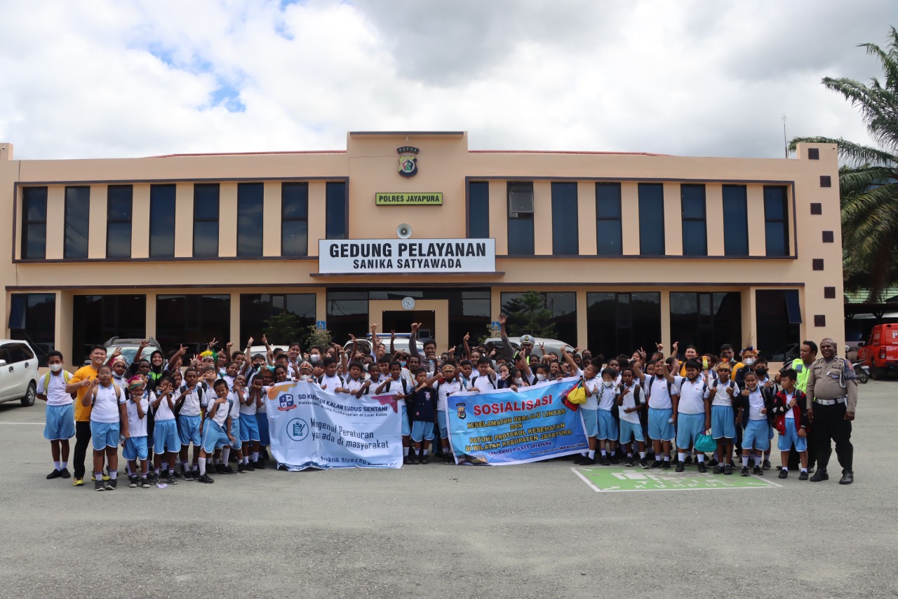 “Hari ini kita mendapat kunjungan dari anak-anak SD Kristen Kalam Kudus Sentani. Anak-anak kita jelaskan mengenai tugas-tugas Kepolisian, pelayanan kepolisian, norma-norma dan aturan yang ada di masyarakat, serta kita kenalkan lingkungan di Polres Jayapura,” kata KBO Lantas Polres Jayapura.