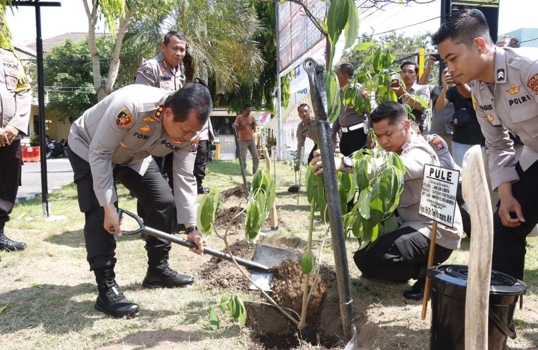 Kunjungi Polres Situbondo, Kapolda Jatim Tanam Pohon Pule dan Santuni Anak Yatim