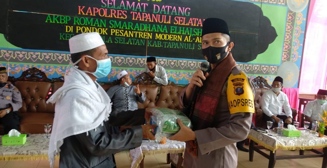 Tapsel,IKAGAWANEWS.ID – Mengikat Silaturahmi, Kapolres Tapsel AKBP.Roman Smaradhana Elhaj, SH, SIK, MH dan Pejabat Utama Polres Tapsel mengunjungi Pondok Pesantren Modren Al-Abrar Desa Sihuik-huik Kecamatan Angkola Selatan Tapsel, Sabtu (27/6/2020) sekira pukul 09.30 WIB.Dalam Kunjungan Silaturahmi tersebut Kapolres Tapsel menyumbangkan 3 unit wastafel atau tempat cuci tangan dan 600 helai masker.