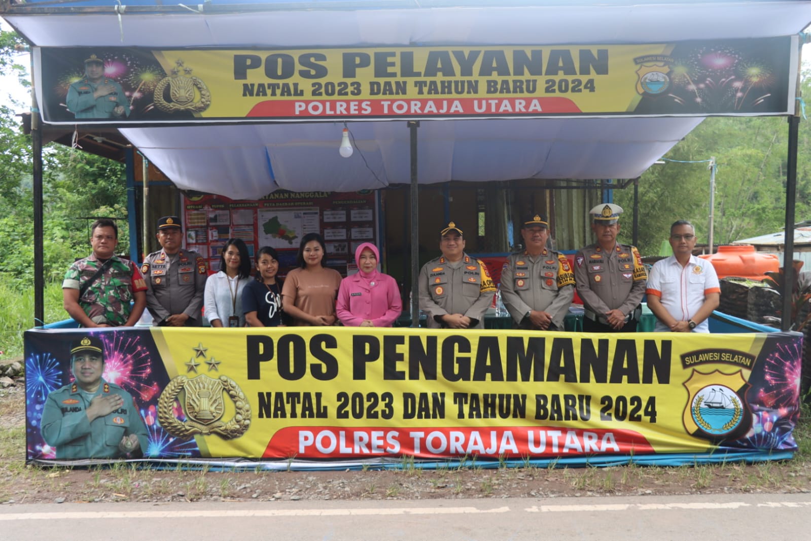 TORAJA UTARA, ikagawanews.idKapolres Toraja Utara AKBP Zulanda, S.IK.,M.Si, didampingi Ketua Bhayangkari Cabang Toraja Utara Ny. Dini Zulanda, mengunjungi Pos Pengamanan (Pos Pam) dan Pos Pelayanan (Pos Yan) Natal 2023 dan Tahun Baru 2024 di Wilayah Hukum Polres Toraja Utara, Rabu (27/12/2023) siang.