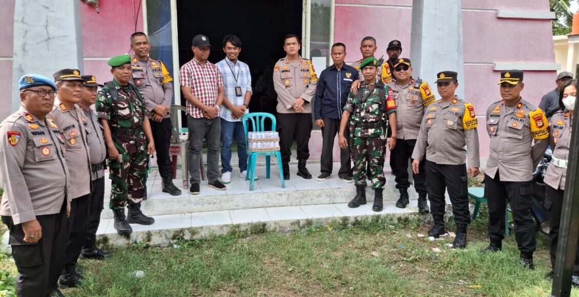 Selain memantau personel, Kapolres Gowa juga memberikan bantuan minuman berenergi dan snack ke petugas PPK dan PPS di Kantor Kecamatan tersebut.