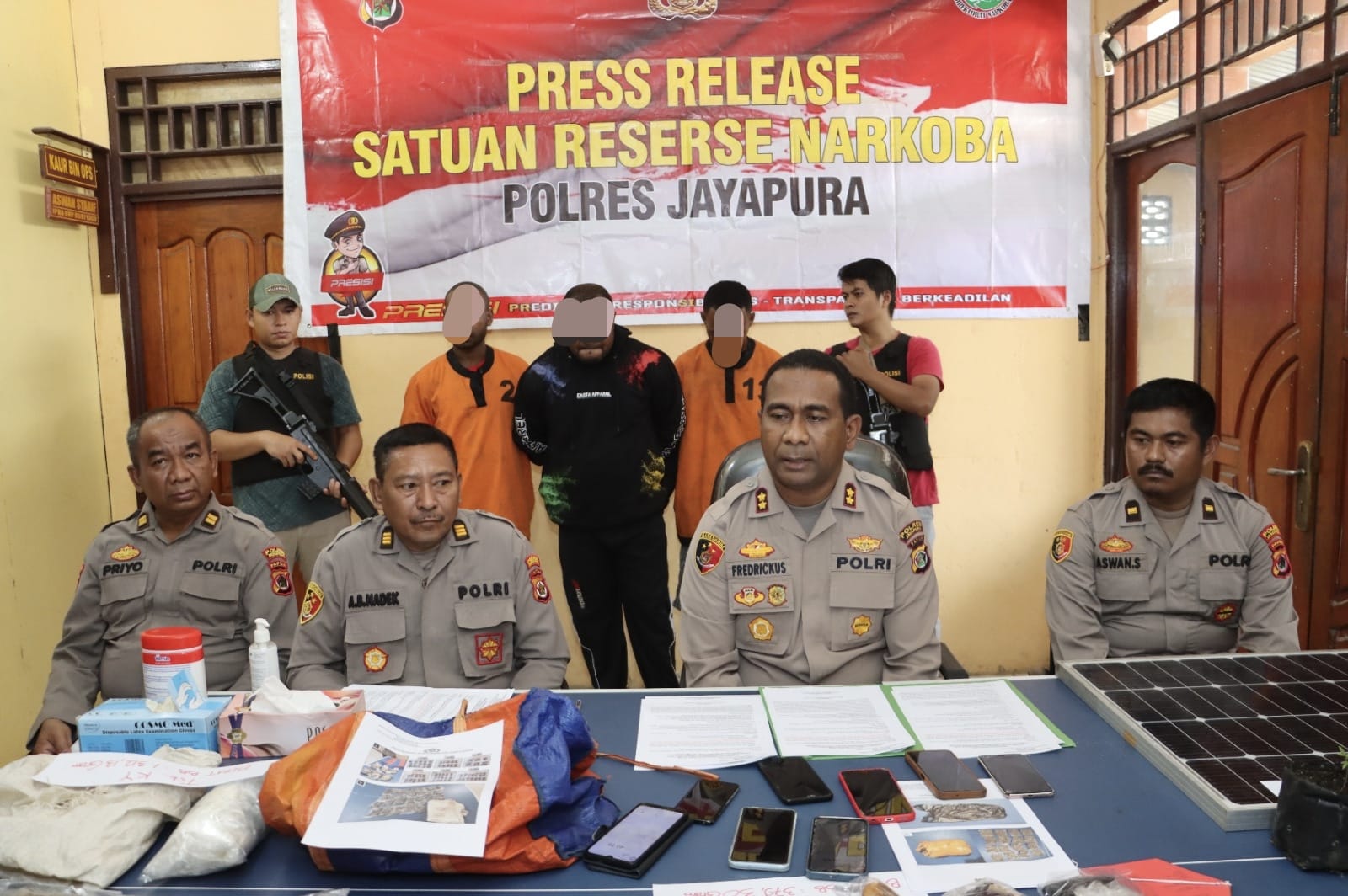Hal ini disampaikan langsung Kapolres Jayapura AKBP Fredrickus W.A. Maclarimboen, S.I.K., M.H., didampingi Kasat Resnarkoba AKP Alfrit B. Nadek, S.H., M.H., Kasie Humas Iptu Priyono dan KBO Sat Resnarkoba Ipda Aswan Syarif. SH.