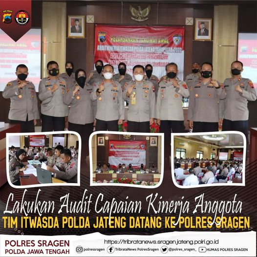 SRAGEN,ikagawanews.id – Polres Sragen menerima tim audit kinerja tahap II tahun 2022 Itwasda Polda Jawa Tengah. Tim audit dipimpin langsung ketua tim AKBP Catur Gatot Efendi, bersama sama tim audit lainnya, disambut langsung Kapolres Sragen AKBP Piter Yanottama pada Rabu (26/10/2022).