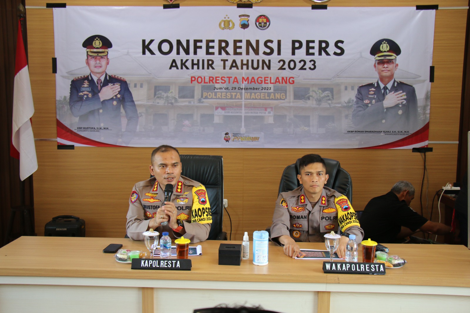 Di hadapan awak media Kapolresta Magelang KBP Mustofa menyampaikan terima kasih dan apresiasi atas peran dan partisipasi masyarakat Kabupaten Magelang dalam memelihara kamtibmas selama tahun 2023. Namun demikian Polresta Magelang juga mohonan maaf kepada masyarakat apabila selama tahun 2023 Polresta Magelang belum memenuhi harapan masyarakat dalam melayani masyarakat.