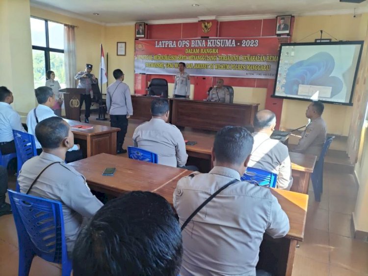 MANGGARAI,ikagawanews.id – Kegiatan Latpra Ops Bina Kusuma – 2023 dalam rangka Mencegah, Menimalisir Serta Menanggulangi Terjadinya Kenakalan Remaja, Premanisme, Geng Motor Dan Jambret Di Wilayah Hukum Polres Manggarai,Senin tanggal 22 Mei 2023 pukul 09.20 wita bertempat di Aula Mapolres Manggarai.