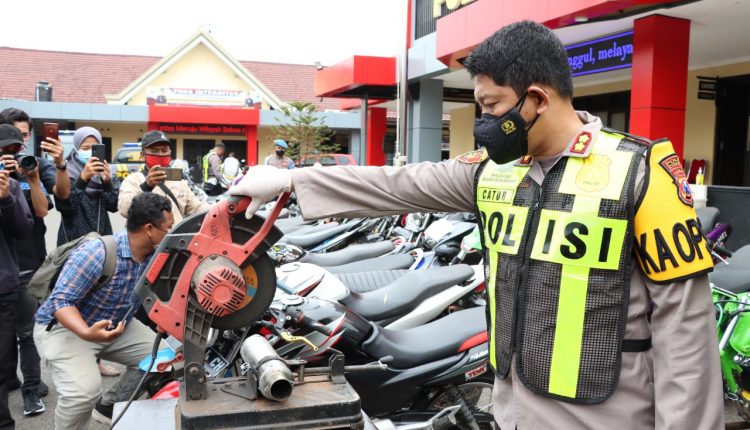 Satlantas Polres Ponorogo akan terus menggelar operasi sehingga kendaraan yang beroperasi di wilayah Kabupaten Ponorogo benar-benar resmi dan aman. “Selain itu kami juga akan mengoperasi kendaraan yang tidak sesuai spesifikasi dan menggunakan knalpot brong.” Pungkas Kasatlantas Polres Ponorogo.(Humas)