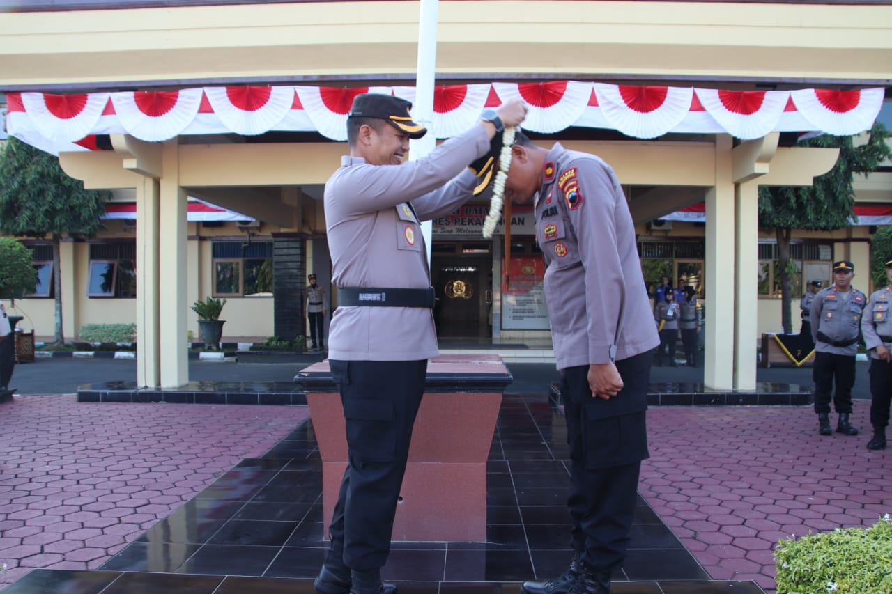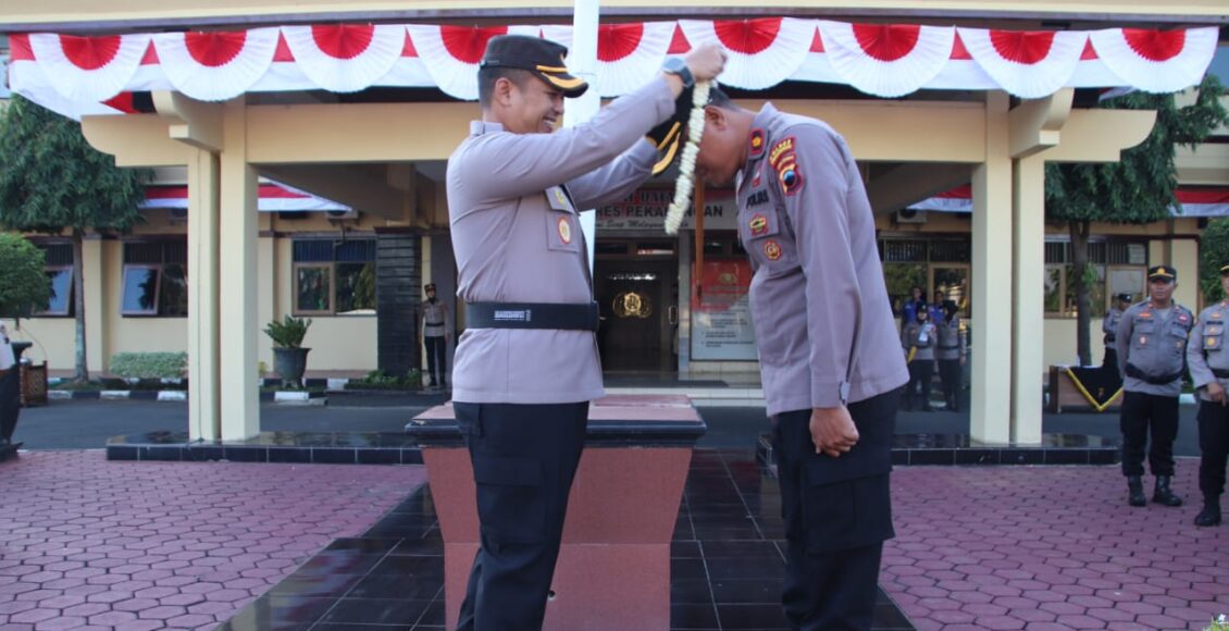 Lepas Kompol Edi Yuliantoro yang Telah Purna Tugas, Kapolres Pekalongan Kalungkan Bunga