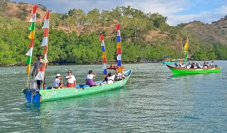 Lewat Darat dan Laut, Aparat Gabungan Polres Belu Amankan Prosesi Naifeto Lalean dari Lakafehan Menuju Paroki Stella Maris Atapupu