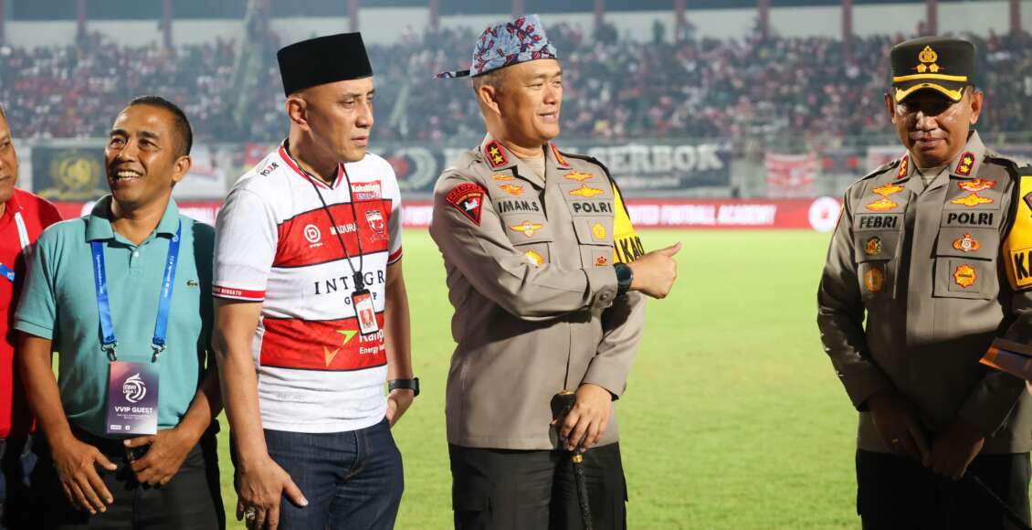 Pertandingan yang juga disaksikan oleh Kapolda Jawa Timur Irjen Pol Imam Sugianto bersama Pejabat Utama Polda Jatim dan Polres jajaran di Stadion Gelora Bangkalan itu berlangsung aman, lancar dan kondusif.