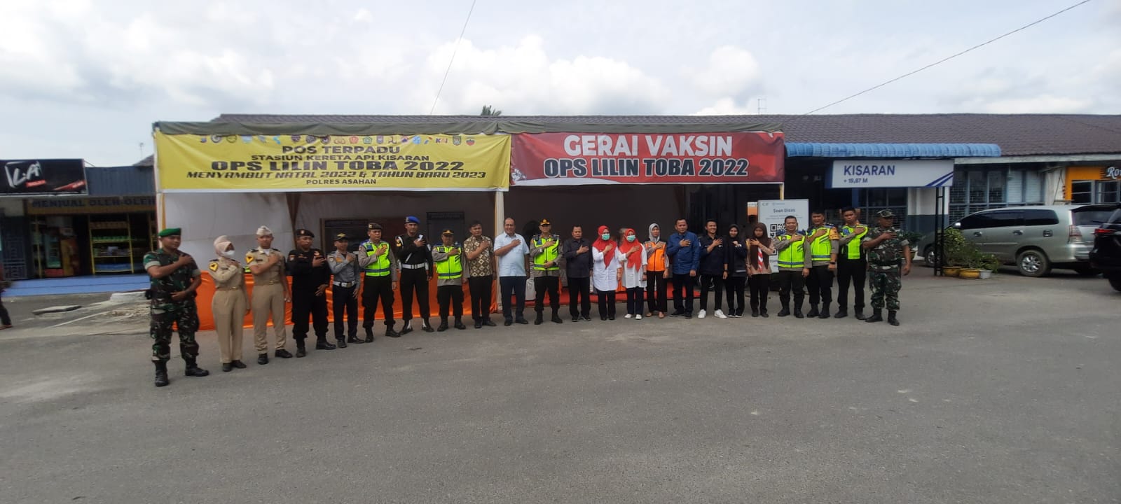 ASAHAN ,ikagawanews.id – Dalam rangka libur Natal 2022 dan Tahun Baru 2023, Kapolres Asahan AKBP Roman Smaradhana Elhaj, SH, SIK, MH, dan Wakil Bupati Asahan Taufik Zainal Abidin, S.Sos, MSi, Kajari Asahan (Mewakili), Ka BNN, Asisten II Ekbang, Kadis Perhubungan, Kadis Kominfo, Kabag Protokol menggelar monitoring pengecekan Pos Terpadu yang berada di Stasiun kereta api Jalan Cokroaminoto Kisaran dalam rangka persiapan pengamanan Natal dan Tahun Baru Minggu (25/12/2022).