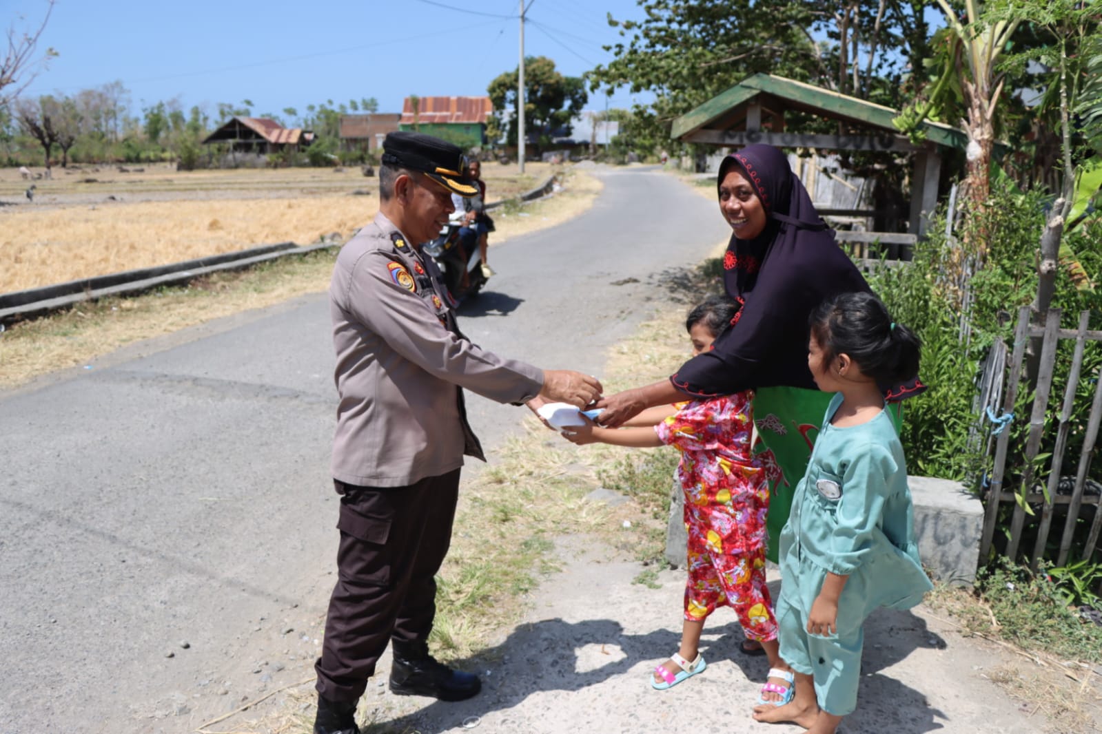 Terlihat, Kabag Ren Polres Bantaeng Kompol Muh Ramli didampingi Kabag SDM Polres Bantaeng Kompol DR. Muhdar membagikan nasi kotak.
