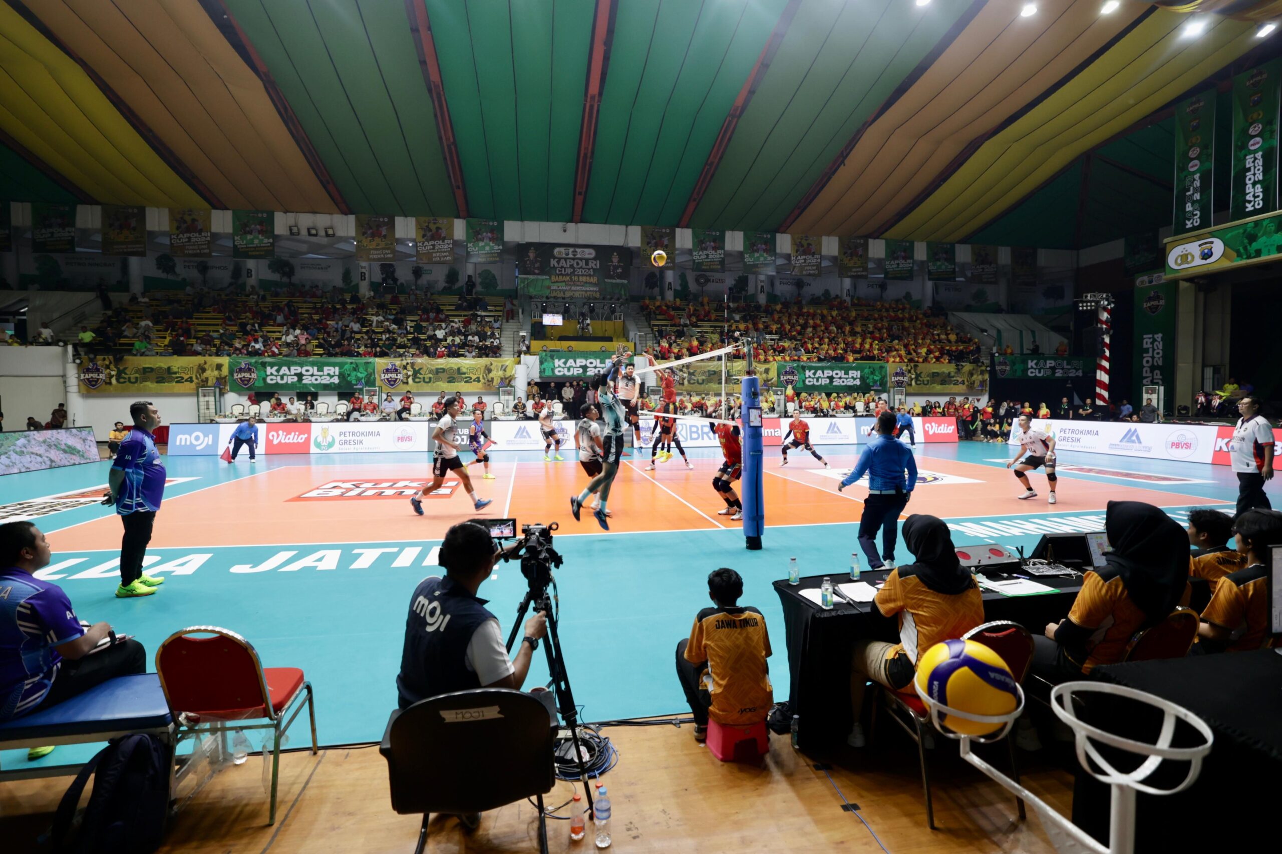Pada pertandingan Voli Kapolri Cup 2024 di GOR Tri Dharma, Gresik ini akhirnya harus dituntaskan lewat fullset.