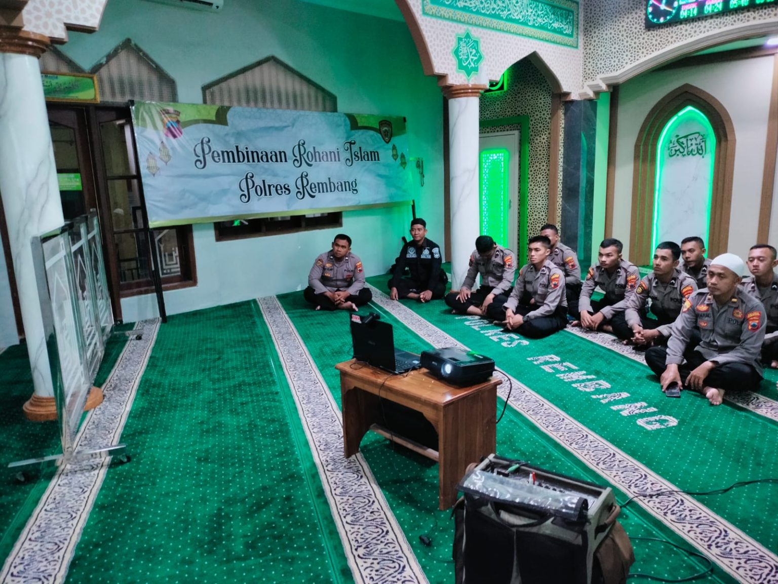 Maknai Bulan Ramadhan, Polres Rembang Ikuti Binrohtal Terpusat Dari Polda Jateng Bersama KH. Drs. Muhyiddin, M.Ag.