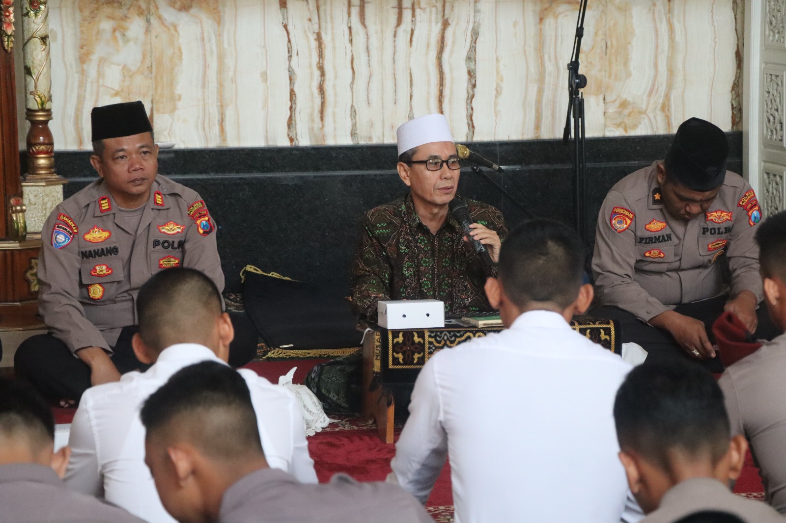 “Memang manusia itu jumlahnya banyak tetapi sedikit sekali yang memberikan manfaat kepada manusia lainnya, oleh karena itu contohlah kehidupan Rasulullah Muhammad SAW, sebagai manusia terpilih berakhlaq mulia dan sebagai Uswatun Khasanah, apalagi sebagai seorang anggota Polisi, sudah sangat tepat untuk melaksanakan ajaran Rosululloh yaitu mengabdikan dirinya sebagai pelindung, pengayom, dan pelayan Masyarakat.” ucap Kyai Haji Mas’ud Abdullah.