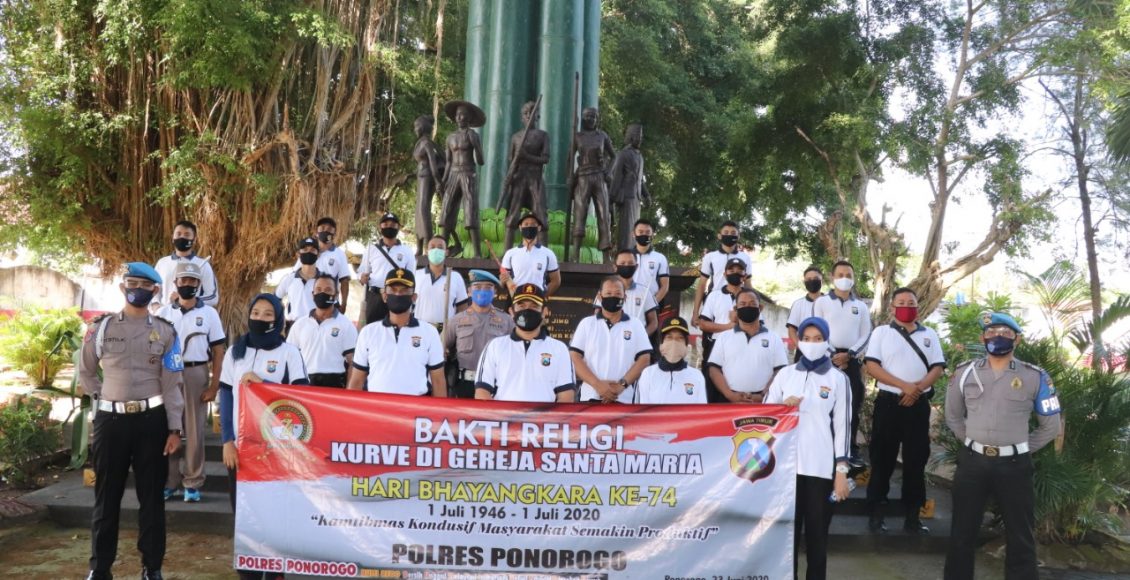Sebelum pelaksanaan kerja bhakti dalam rangka menyambut hari bhayangkara ke 74 dilaksanakan apel di halaman mako Polres yang di lanjutkan pembagian sektor Korvei diantaranya Masjid Agung RMAA Cokro Aminoto Ponorogo Jalan Diponegoro., Gereja Santa Maria Jl Gajahmada Ponorogo dan Taman Makam Pahlawan “Wira Patria Paranti” jalan Pahlawan Kelurahan Bagunsari Ponorogo.