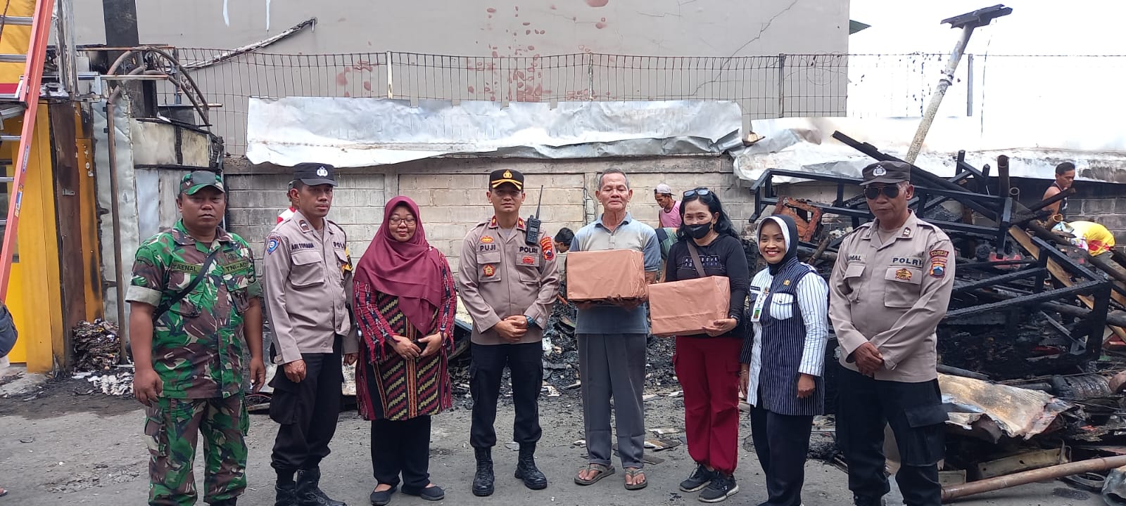 Kapolresta Banyumas Kombes Pol Dr. Ari Wibowo, S.I.K., M.H., melalui Kapolsek Purwokerto Selatan menyampaikan, Bansos berupa sembako diberikan kepada warga yang menjadi korban kebakaran, yaitu Sri Hastuti pemilik warung Warmindo Sodara dan juga Abu Supyan pemilik warung Lumpia Boom.